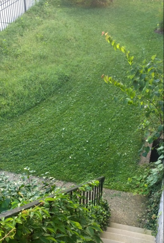 Checking the self healing capability of soil and plants by smart mowing techniques. North side is mostly shaded - slow process - stormwater issues decreased.